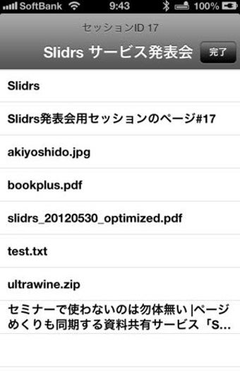 Slidrs(スライダーズ)は、会議やセミナーなどで、資料共有サービス「Slidrs」を通して共有されたプレゼン資料をiPhone・iPad上で閲覧できるツールです。